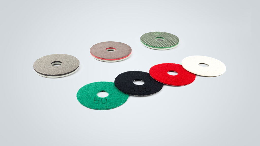 - Felt polishing discs (coiled and pressed) for the high gloss polish of glass