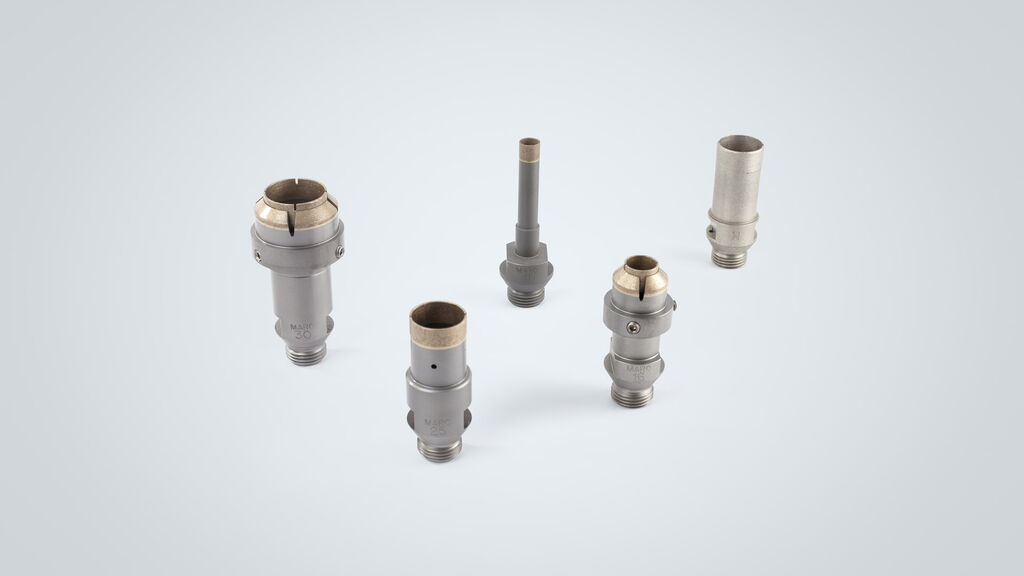 - Glass abrasive belts with abrasive SiC, AIO, compact grain or diamond and cork polishing bands, as well as diamond handblocks and washers with Velcro and magnetic fastening